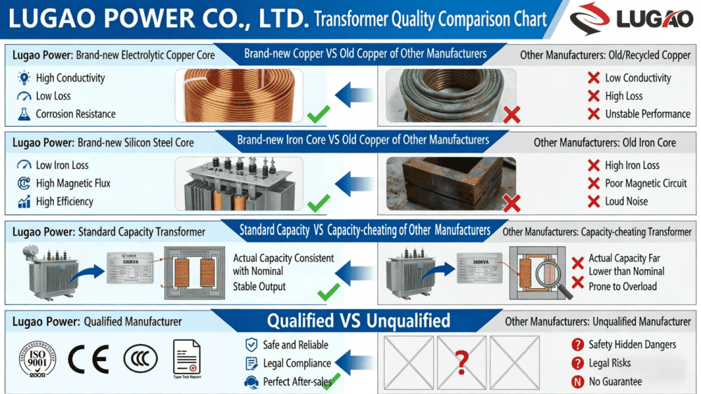 Lugao S11-33KV serisi yağlı dağıtım transformatörlerinin performansları IEC Standartlarına uygundur. Çekirdeği kaliteli soğuk haddelenmiş silikon levhadan olup tam gönye delinmez yapıda olup, bobini kaliteli malzemeden üretilmiştir.