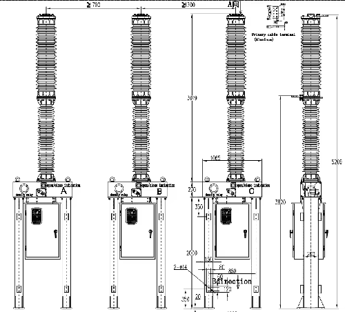 Transformatör ile üç fazlı yüksek voltaj 35kV 40.5kV vakum devre kesici
