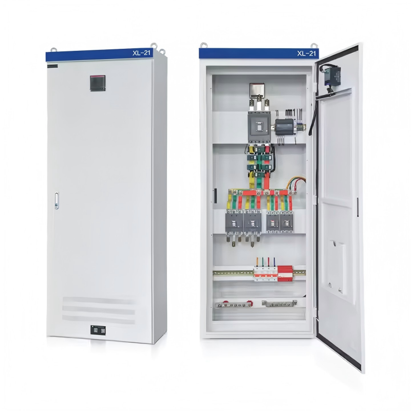 XL-21 alçak gerilim güç dağıtım kabini öncelikle, 50 Hz'e kadar AC frekansları ve 500 V'a kadar gerilimlere sahip üç fazlı, üç telli ve üç fazlı, dört telli sistemler kullanan endüstriyel ve madencilik işletmelerinde güç dağıtımının yanı sıra güç aydınlatması için kullanılır. Bükülmüş çelik plakalardan yapılmış kapalı bir muhafazadır. Bıçak anahtarı çalıştırma kolu, güç anahtarlaması sağlayan üst sağ ön sütunda bulunur. Bara gerilimini göstermek için dağıtım panosuna bir voltmetre takılmıştır. Ön kapı, kolay inceleme ve bakım için tüm dahili bileşenleri açığa çıkarır. Bu dağıtım kabini son teknoloji ürünü bileşenleri kullanarak kompakt bir tasarım, kolay bakım ve esnek kablolama konfigürasyonları sağlar. Kısa devre koruması için havalı devre kesiciler ve sigortalara ek olarak kabinde kontaktörler ve termik röleler de bulunur. Ön kapıda düğmeler ve gösterge ışıkları bulunur.